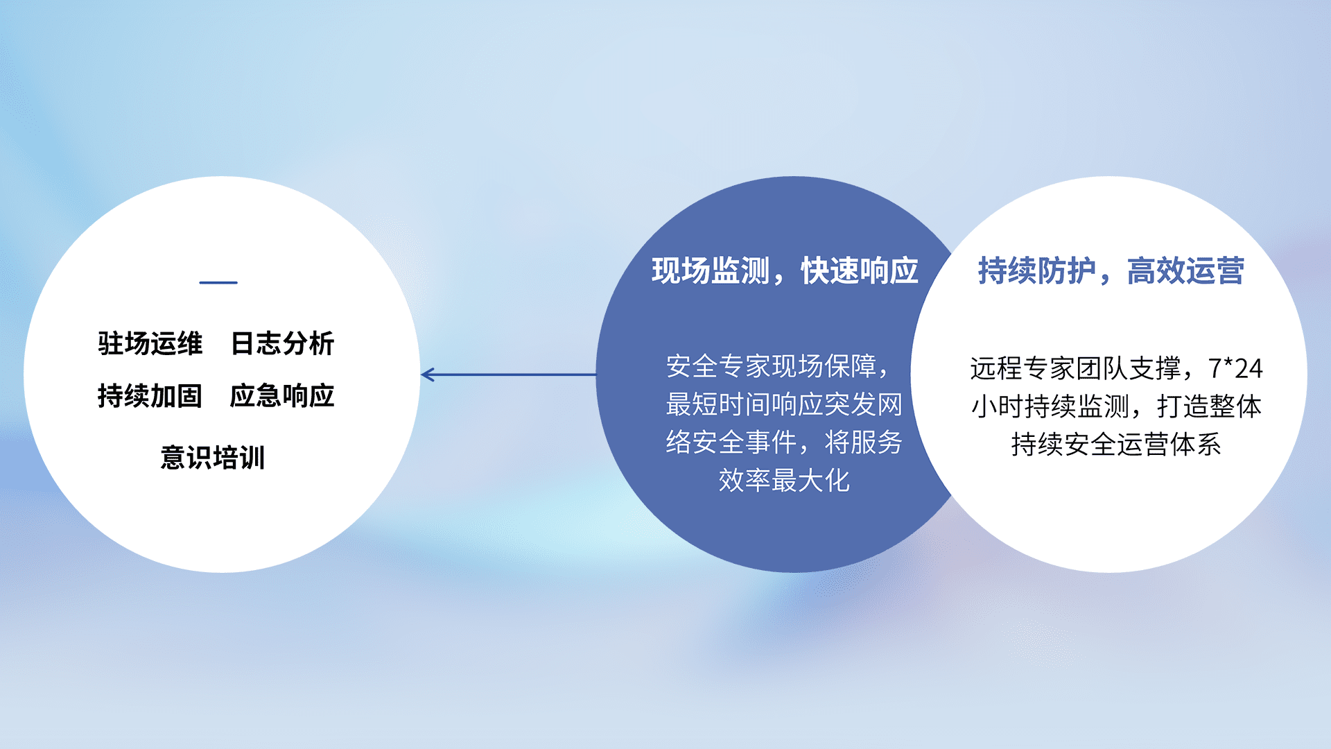 针对客户行业特性,,提供专属的一站式安全管理服务,,帮助客户全面感知网络空间威胁,,,通过安全专家的线上、、线下防护支持,,实现风险闭环,,将安全保障常态化,,为客户打造常态化安全运维运营服务。。。